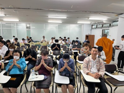 ๑๐.๓๐ น. กิจกรรมทางศาสนาพุทธ เสร็จกิจกรรม (ถ่ายภาพหมู่-การสวมใส่ผ้าไทย)